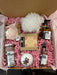 El juego incluye: vela de rosa brillante en frasco de vidrio con frente, spray de habitación de rosa brillante, sales de baño de geranio rosa, aceite de baño relajante, bomba de baño absoluta de rosa, jabón de karité de arcilla rosa, bálsamo labial teñido de rosa rosa, cubierta de jabón y Scrunchie de baño de ramio